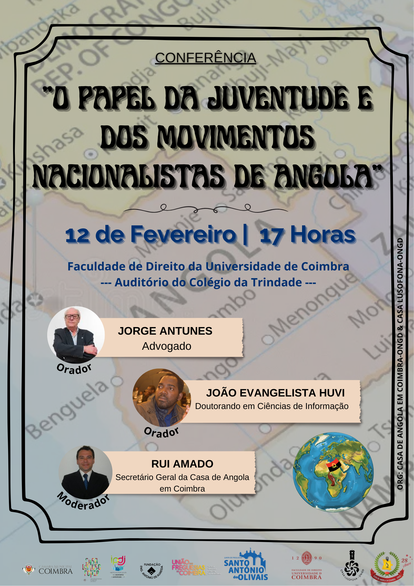 No âmbito do seu programa celebrativo pretende promover uma conferência com o título “O Papel da Juventude e dos Movimentos Nacionalista de Angola” Faculdade de Direito UC- Colégio da Trindade, 12 de Fevereiro de 2026, às 17.00 horas.