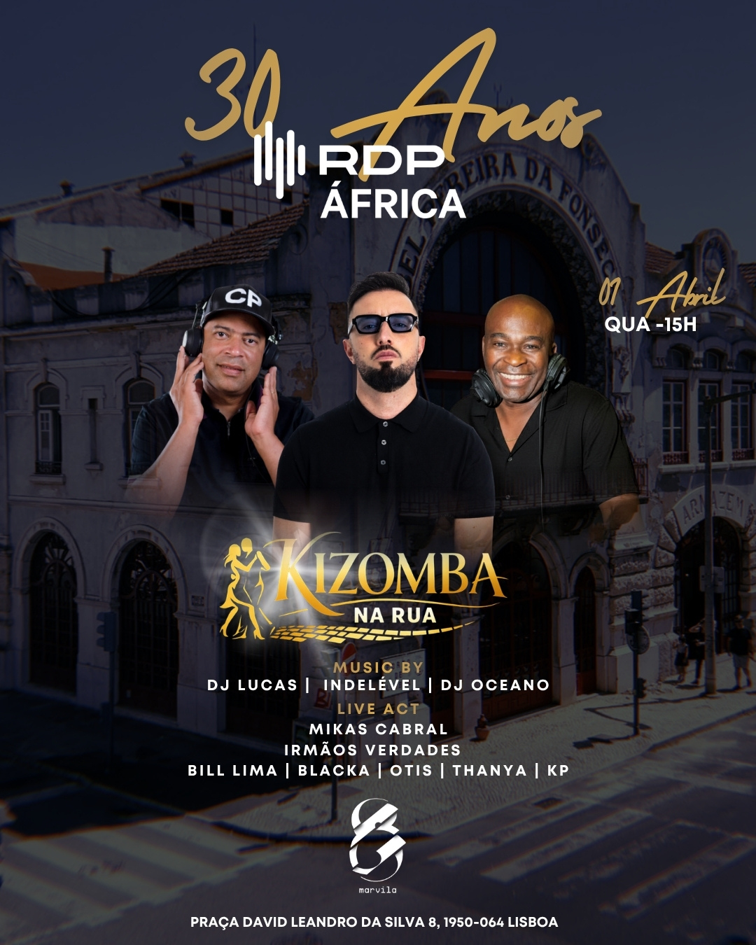 No âmbito das comemorações dos seus 30 anos, a RDP África promove o evento “Kizomba na Rua”, a realizar-se no próximo dia 1 de abril, às 15h00, na Praça David Leandro da Silva, em Lisboa.